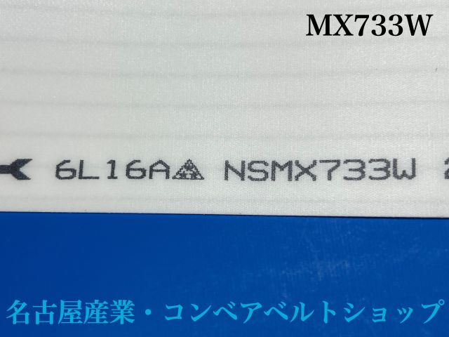 MX733Wは表面が鏡面形状でクリーム系商品やチョコレート等の汚れが拭き取りやすく、裏面は海産物・食肉・油等のすり込みによるベルト収縮に強い帆布を兼ね備えたママラインベルトとなります。