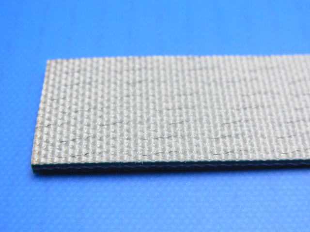 表面PVC・平滑艶なし・ダークグリーン色のバンドーベルトとなります。一般搬送用のPVCカバーベルト。広幅対応可能な低コストタイプです。