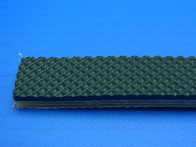表面は塩ビ、MT目付、緑色のニッタ製品ベルトとなります。