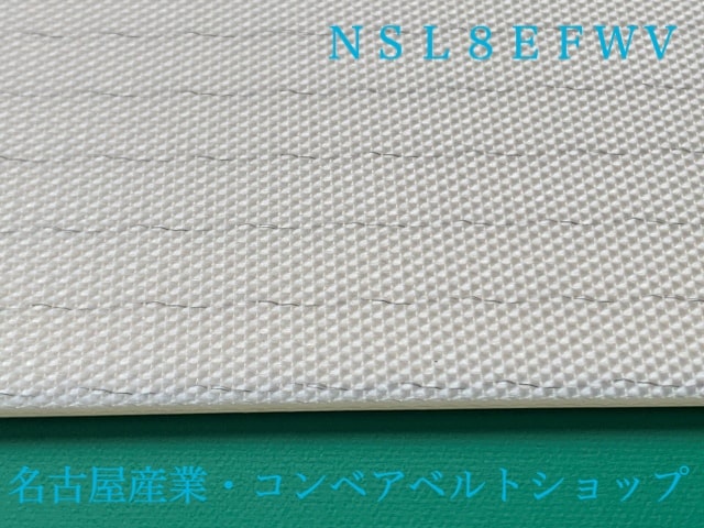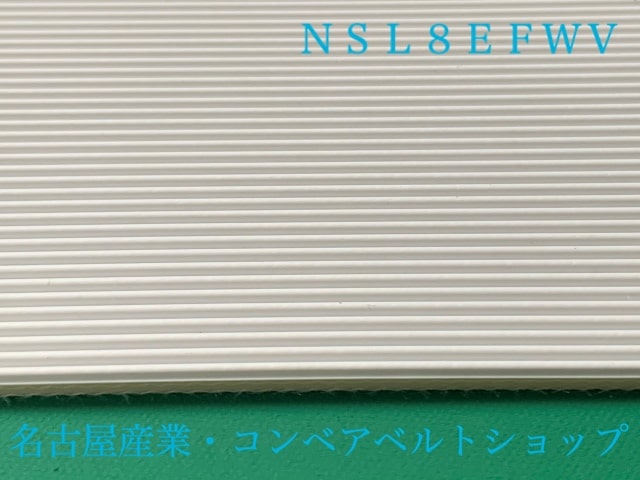 2P120/GP_WGが廃盤予定商品となりまして、後継相当品型番はNSL-8EFWVとなります。表面PVCの白色縦溝ベルト、食品直搬送で傾斜コンベア等にも使用可能なベルトとなります。