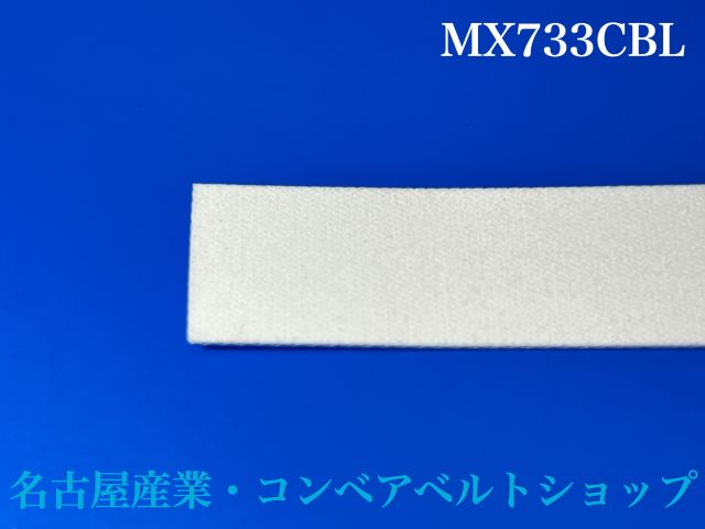 MX733CBLは表面スカイブルー色の鏡面ベルトで搬送時に発生するベルト表面の汚れが拭き取りやすく、耐次亜塩素酸ナトリウムを使用した洗浄による劣化が軽減でき、すり込み収縮耐性や多機能を兼ね備えたフルスペックのママラインベルトとなります。